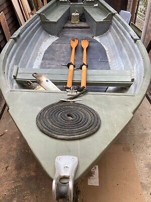 13 ft Fishing Boat. Simulated ClinkerEither Orkney or Shetland Bilge Keel Hull, can’t remember which.Hull is sound with no repairs. Been in water past 6 years so is watertight.Boats comes with:- Pin type oarsMud weightsHas outlet fitted for bilge pumpUnbraked trailer which was homemade for this boat. Galvanised axle, 10” wheels and spare. Wheel bearings are perfect, all three tyres are brand new proper trailer tyres. Winch and jockey wheel. Trailer dismantles for stowage. It tows lovely. This boat can be taken away and put straight into the water. Has good open deck space for easy unhooking etc.All you need is a light boardAny questions please askAdvertised elsewhere
