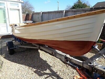 HELLO AND WELCOME TO THE SALE OF MY BEAUTIFULL CLASSIC BOAT…..PURCHASED AS A PROJECT OVER THE WINTER/SPRING AND HAS NOW BEEN COMPLETELY RENOVATED USING THE BEST MARINE MATERIALS AND PAINT/VARNISH.ALL VARNISHED WOOD HAS BEEN REMOVED, STRIPPED, SANDED AND 6 COATS OF INTERNATIONAL SCHOONER VARNISH APPLIED.THE HULL INSIDE AND OUT HAS BEEN SANDED BACK AND 4 COATS OF MARINE ENAMAL PAINT APPLIED.THE BOTTOM HAS HAD TWO COATS OF INTERNATIONAL ANTIFOUL APPLIED AFTER SCRAPING OF LOOSE PAINT.FLOOR HAS HAD TWO COATS OF INTERNATIONAL MARINE NON SLIP FLOOR PAINT.IT HAS HAD NEW KEEL AND BILGE STEEL BANDS FITTEDA NEW JABSCO BILGE PUMP IS FITTEDTRAILER IS A BREAK BACK 750KG WITH KEEL AND SIDE ROLLERS WHICH HAS BEEN COMPLETELY CHECKED, BEARINGS REMOVED AND RE GREASED. A BRAND NEW SPARE WHEEL IS SUPPLIED. A VERY EASY LAUNCH TRAILER.ENGINE IS A MERCURY F 3.5 ML LONGSHAFT 4 STROKE WHICH IS BRAND NEW AND COMES WITH PURCHASE INVOICE , TOOLS AND MANUALS. IT HAS NEVER BEEN STARTED SO IS ABSOLUTELY BRAND NEW. IT COMES WITH FULL MANUFACTURER WARRANTY WHICH IS 5 YEARS.A NEW TRAILER BOARD ( MODIFIED FOR EASY FITTING ) BRAND NEW HIGH QUALITY OARS WITH BRASS ROWLOCKS ARE SUPPLIED ALONG WITH TWO MOORING LINES.ABSOLUTELY READY FOR THE SEASON.. NOTHING NEEDED, JUST NUMBER PLATE, PUT FUEL IN THE ENGINE AND ENJOY THE SUMMER.A VERY NICE EYE CATCHING BOATTHIS IS A PRIVATE SALE AND NOT CONNECTED TO MY BUISNESS ON HEREPAYMENT IS CASH OR BANK TRANSFER ON COLLECTION ONLY FROM TROWBRIDGE IN WILTSHIREPLEASE CALL DAVID ON 07771 622623 FOR MORE INFORMATIONTHANKS FOR LOOKING