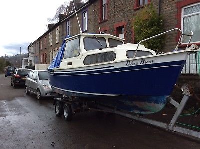 Hi here we have for sale hardy 18 ft trailer boat it’s 90percent finished I have all the new specialist paint to do it I got the carpet to re do the cabin which will come with boat ,the boat has had all new electrics and lights new battery brand new ship shore radio and aerial new fish finder plotter garmin anchor cooker sink toilet ,the trailer is a bit rusty and needs a good rub down and paint but it is solid and road worthy good tyres but got no spares comes with light bored and strap rachete few boys ,the rear cover clips tidy to the boat and keeps water out no rips or tears ,the engine and tilt and turn work tidy I would say the engine would benefit from a service but starts and runs fine I have got a barell to show it working . Reason for sale is I had planed on keeping it down our caravan but new rules say no trailer boats on site plus I’m not hundred percent confident and decided it’s maybe not for me any questions best thing to give me a call 07886737551 any time