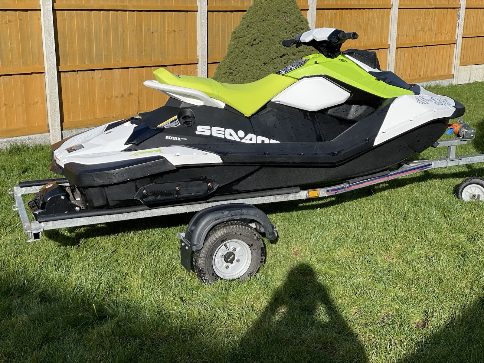 For sale is a nearly new 2023 Sea-Doo Jet Ski 2up, perfect for both fresh and saltwater use. This Jet Ski boasts a powerful 900cc engine manufactured by Sea-Doo, ensuring a thrilling ride on the water. – This is a superb ski ideal for fun activity days and also perfect for beginners- Top speed 50mph- it’s the most economical ski on the market, you could stay out all day on one tank -Brought this ski from new in June 2023 and is still under warranty-The ski has been looked after & has always been flushed and washed after each use -Only 31hrs- had an extra front travel compartment professionally installed at purchased to store any items – comes with new trailer and number plate mount and is the same age as the ski – data tags installed with all supporting evidence – have all the paper work for the ski- Has minor wear and tear scratches on sides from mooring- comes with the seadoo BRP speaker and has amazing sound quality which cost £1,000 and £100 to have the mount professionally installed – I’m selling as I’ve just purchased a speed boat – if you do not require the sound system I will reduce by £450- I will have it serviced prior to sale exchange- has tracker