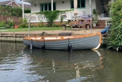Ideal for water sports or fishing, this boat can accommodate up to 4 people and is easy to handle. Its durable construction ensures that it will last for years to come. With its sleek design and ample space, this boat is an excellent choice for anyone looking for a high-quality watercraft. Grey GRP, wood interior . Absolutely stunning !It comes with two sets of brass rowlocks, rudder, ropes and 2 sets of oars. Complete with a brand new Tonneau cover & weights.Please note it DOESN’T come with a trailer! Currently sitting on the Thames at Teddington Viewings invited Cash once seen and happy