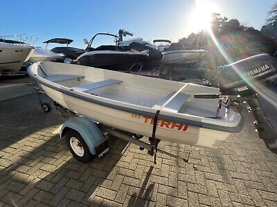 2017 Terhi 385 with Yamaha HP outboardIndespension roller trailer with lighting board and strapsSet of oarsSmall anchorHeavy duty overall coverRated to carry 4 passsengersUnsinkable construction clean and tidy example of the safe and stable boat, easily moved and effortless to row.Engine will be checked over prior to handover .Delivery can be arranged.