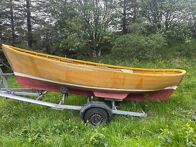 16ft GRP Rowing / Sailing boat. Bilge keels, 5ft 6inch beam. Internal transom – (cut down to fit bigger outboard), Transducer blister. Single axle trailer with winch. Brakes not working. Stored inside over Winter. Can deliver depending on location. Listed elsewhere.