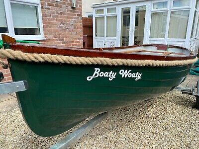 HELLO AND WELCOME TO THE SALE OF THIS LOVELY HIGH QUALITY `DUCHESS` ROWING BOATPURCHASED NEW BY THE OWNER I BOUGHT IT FROM AND HAD BEEN USED ON THE THAMES FOR DAYS OUT. ( IT WAS NAMED `BOATY WOATY` BY THE PREVIOUS OWNER.HEYLAND MARINE `DUCHESS` ROWING BOATS ARE MADE TO A VERY HIGH STANDARD USING MAHOGANY WOOD, BRONZE OR BRASS FITTINGS THROUGHOUT AND ARE AN EXCEPTIONALLY GOOD ROWING BOAT. MORE DETAILS AND PICTURES CAN BE FOUND ON THE INTERNET FROM HEYLAND MARINELOTS OF CARE , TIME AND EFFORT HAS GONE INTO RESTORING HER TO THIS CONDITION USING ONLY QUALITY MARINE PAINT AND VARNISH. EXCELLENT FULLY GALVANISED ROAD TRAILER WHICH WOULD TAKE UP TO A 14 FT HEAVIER BOAT HAS HAD A FULL CHECK OVER AND NEW WHEELS AND TYRES. A SPARE WHEEL AND TYRE IS ALSO SUPPLIED, ALONG WITH A NEW TRAILER LIGHTING BOARD AND TWO FENDERS.A CUSTOM MADE EXCELLENT ALL OVER COVER IS ALSO SUPPLIED AS IN PICTURECASH OR BANK TRANSFER ON COLLECTION FROM TROWBRIDGE WILTSHIRETHIS IS A PRIVATE SALE AND NOT CONECTED WITH MY BUISNESS ON HEREPLEASE FEEL FREE TO CONTACT ME WITH ANY QUESTIONSMANY THANKS DAVID TEL 07771 622623