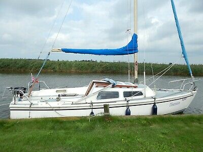 Jaguar 22 foot sailing yacht.My dad has owned this boat for 3 years and loves improving boats and generally making them as good as possible. Job is now done and moving on to another boat to do the same thing.Improvements are as follows. Brand new Tohatsu 6 hp 4 stroke engine and controls cost £1600 and engine done less than 4 hours. Brand new rudder. Sails made by Jeckells of Wroxham. All new LED electrics incl nav lights, cabin lights and cockpit light.Hull original gel coat and polished with new antifouling done may 2021.Boat safety certificate just done so valid for 4 years.Broads licence paid till April 2022.New winch fitted to lifting keel.New table with hand crafted inlaid design.Sea toilet This is a cheap but beautiful boat and and all it now requires is a new coat of deck paint.New boat is arriving soon so need to sell to make my mooring available for my new project.Moored at Martham.There are lots more improvements made and you are invited to view yourself. This boat is in fantastic boat and is ready to be used.