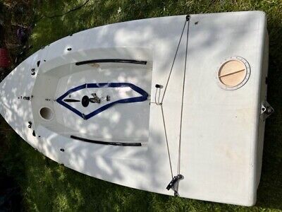 2003 Laser 2 Boat no – 3726Don’t Know too much about it. Was my dad’s but has been sat in the garden for the past 8 or so years. Various knocks and dings to the edges and some cracking in places but was used a number of times before going away so everything should be there. Would need a repair to the rear hull edge before use (see photos) Comes with a launcher and a unbranded trailer. The launcher will need new tyres before use and the trailer new wheels & tyres. sails have been dry stored since last in use so should be in ok but would advise viewing as i wouldn’t know what to look for.dimensions length – 4400mm width at widest point – 1450mm mast – section 1 – 4500mm section 2 – 1600mm boom – 2700mm rudder – 950mm Dagger board – 1150mm 99p starting price – no reserve