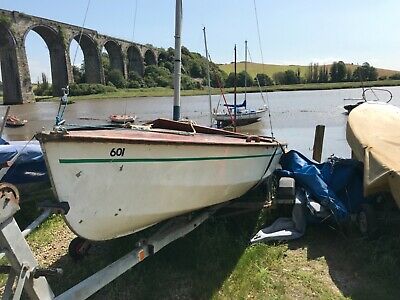 lovely old but great Wayfarer Dinghy. It’s a GRP hull with wooden decking (recently replaced). She is old but in good condition, just needs a clean up. She comes with the following;Outboard Bracket3 sets of sails including a furling jibAll floors470 mast- not standard wayfarer but same sizeLaunch trolley and road trailer- not great as rusty and probably wouldn’t go too far with the road trailer.Cover- sun faded but fine with a few small ripsShe is in fairly good condition and would suit a family looking for adventures. Needs a little TLC but we have been using her to potter on the river. Wayfarers are brilliant boats.Get afloat with a cheap Wayfarer that will probably outlast you! You can take her away and sail tomorrow!Pick up only, no delivery and bear in mind the trailer is not great (the trailer she is on now and in the pics are not the ones for sale)The final eBay Price is what you pay- don’t turn up after the auction and start haggling.