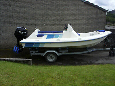 Surfrider powerboat, This boat is very rare, brand new engine, Main engine 50HP Tohatsu 4 stroke engine has never been to sea and is brand new.Trailer is two years old. The boat has a new towing cover.This boat is great fun to drive and easy to handleThe dimensions are Length 4.4 m Beam 2 mThe boat has a colour GPS/ fish finderThe boat is also fitted with a s/steel boarding ladderThe passengers all sit inline astern, there are also three more seats its like a large jetski