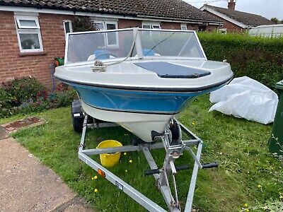 winner cobra speed/day boat , shes is pretty good condition , was painted in 2023 and painted to a high standard , new plexi glass in the windshield. there is a new speedometer that comes with her , ultraflex steering rig in place ready to go . new cushions and a few extras including the original tarp although needs refitting and cleaning up and one little patch doing on a hole easily done with a stick on patch . the transom timber could now do with renewing , however i have a steep plate to fit that will be fine for a few years untill someone wants to renew it . the boat is very stable and with a nice little 4 stroke on the back makes a lovely little day boat for inland water ways , polished up she shines and looks lovely. overall with a little tlc she is a really nice boat . she is 15ft in length and just under 6f beam . 2 gastron seats in vgc , and a rear bench seat .with a nice bit of space inbetween . she comes with an excellent bridport 17ft trailer that takes 15 to 16 ft to winch post , however the winch post is adjustable… brand new wheels and tyres , new bearings , adjustable stainless light board all ready to go , tows beautifully. selling do to no longer able to boat …
